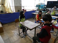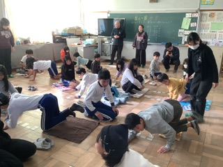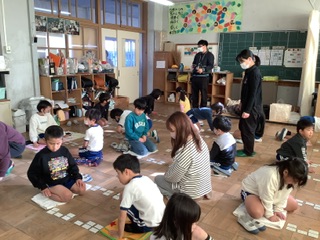 今日は、お誕生日会でした。1月、2月、3月の友達の誕生日をみんなでお祝いしました。5、6年生がバクダンゲームや震源地ゲームなど、楽しい遊びを企画してくれ、みんなで楽しく遊ぶことができました。