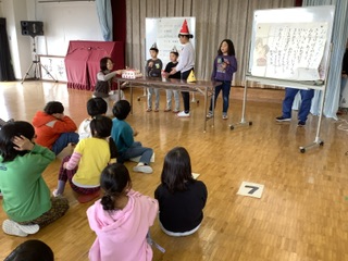 保護者の方と全校児童の前でとてもドキドキでしたが、心からの手拍子や拍手をもらい、今までで一番上手に演じることができました。その後の、給食の時間には、子どもたちはやりきったという自信に満ちた表情でしたよ。