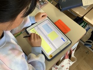 タブレットを使って、写真やメモをもとにまとめ学習を行いました。公共施設で働く人の思いや努力に気づいた子どもたちは、「自分たちの生活がたくさんの人に支えられていること」に改めて気づき、感謝の気持ちを持つことができました。