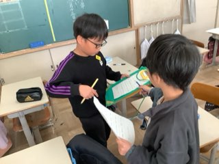 冬休みビンゴをしました。久しぶりに出会う友達との会話を楽しみました。「おもちをいくつ食べた?」など会話の弾む話題に大盛り上がりしました。