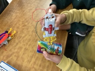 あかりをつけようホタルが完成しました。電気を通すものを探して、ホタルの明かりをつけました。