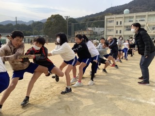 今日は体づくり委員会主催の、5年生の綱引き大会がありました。各クラス色々な作戦を練って参戦。王者は3組でした!