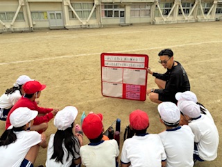 出場するためには「校内記録会」で勝ち抜くことが条件となります。 その「練習」「記録会」を兼ねた「特設陸上クラブ」を今年もスタートしました! 5、6年生の希望者が放課後に練習をし、体力向上と記録向上、仲間と競い合い、運動を楽しむことで得られる達成感を目標としています。 本日は第一回目。「暑さ」から「寒さ」へ一気に変わった気候に驚きつつも熱心に指導する教師と、真剣に取り組む子どもたちとで、何とも「心地よい」時間となりました^_^ 本日は第一回目。「自分の現状を知ろう」というめあてを十分に達成できたのではないでしょうか^_^ これからの「成長」が楽しみです^_^