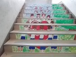 運営委員会の子どもたちが「いじめ防止啓発月間」の取組みとして、中央階段の16段分と西階段の8段分に階段アートを作りました。この取組みは、10月から委員会で様々な意見を出し合い、「志賀小がもっと明るい学校になるように・・・」「見た人が温かい気持ちになるように・・・」という思いで進めてきたものです。これを見つけた子どもたちは、「すごい!」「きれい!」と歓声を上げていました。この階段アートに込められた願いをみんなが知り、志賀っ子の心が一つになり、明るく楽しい学校生活をみんなで作っていきましょう・・・。