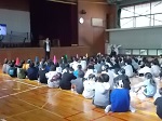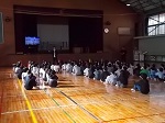 来週26(水)に実施予定の「シャトルラン大会」の説明会が、昼休み体育館でありました。このシャトルランは、1学期に実施した新体力テストの種目の1つで、全身の持久力を測る種目です。20m間隔で引かれた2本の線の間を往復し続ける種目で、徐々に速くなる時間内に往復し続け、間に合わなくなった時点で終了になります。そこまでの往復回数が記録となります。うれしいことに、多くの子どもたちが集まりました。自身の限界に挑戦しようとする気持ちをみんなで応援したいと思います。そして、体力を高めインフルエンザを吹き飛ばしてほしいです・・・。