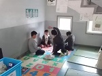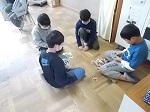 今日は朝から冷たい雨が降ったりやんだりしています。30分間の昼休み、子どもたちはいろいろなところで様々な遊びをしています。体育館では、志賀リンピック(なわとび大会)に出場する子どもたちがなわとびの練習に励んでいました。階段下のココワンコーナーでは、大型のめんこで大きな音をたてながら遊んでいる子どたちがいました。3階では将棋で楽しんでいる子どもたち、教室では読書やトランプ等をしている子どもたちがいました。