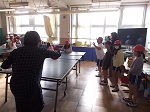 今日の2・3時間目、ひまわりで卓球教室がありました。歓声が聞こえるのでのぞいてみました。講師の先生に教えていただきながら、とても上手に球の打ち合いをしている子がいました。狭いコートの中に上手に打ち返す子もいました。順番を待っているとき、素振りの練習をしている子もいました。ラケットの動かし方や、手首の使い方など、とても上手で感心しました。ルールや順番を守り、一人ひとり、とても楽しそうに集中して球を追いかけている姿がかっこよかったです・・・。