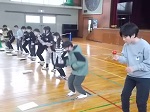 昼休み運動場から、大きな声でかけ声が聞こえると思ったら、先日から始まった綱引き大会をしていました。今日は5年生の番でした。からだつくり委員会の子どもたちが考え、実践しています。さすが5年生にもなると、綱を引く力はとても強く迫力があります。始まる前に、真ん中がちょうど動かないように子どもたち数名が綱を踏んでいるのですが、一斉に引き始めるとこの子どもたちは宙に浮き上がり、力のすごさを感じます。声を合わせ、心を合わせ、勝った子どもたちは、声をあげて大喜びしていました。インフルエンザが流行り始めました。明日からは最強の寒波がまたやってくるとの予報です。健康管理に気を付けましょう。