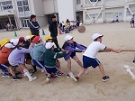 今朝の宇佐山は、深夜に降った雪で、山いちめん、雪化粧になっていました。昼休み、からだづくり委員会の子どもたちが、綱引き大会を計画してくれました。今日は1年生の綱引き大会の日でした。たくさんの1年生が運動場に集まりました。学級ごとに対戦をしました。初めてする綱引きに、子どもたちは目一杯、綱を引いていました。これから、来週にかけて学年ごとに大会が行われます。