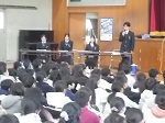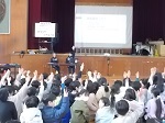 今日の午後から、6年生対象に中学校に向けての説明会が体育館でありました。皇子山中学校の生徒会役員4名が中心となって、この説明会を進めてくれました。日課や制服の紹介、学校生活やクラブ活動など、最初、子どもたちは少し緊張気味でしたが、しだいに緊張もほぐれ、前のスクリーンを見ながら、これから始まる中学校生活に思いをはせていました。子どもたちは、期待と不安が入り混じった時期ですが、この説明会で少しは安心して中学校生活が送れるようになったのではないかと思います・・・。