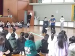 今日のlong昼休みは「学校夢づくりプロジェクト」の第3弾。滋賀県スポーツ協会から、体操競技の山田元大選手と小野奈美選手に来ていただきました。厳しいトレーニングを積み重ねてこられた両選手は、今回の国スポにおいても滋賀代表として出場し、滋賀県の天皇杯・皇后杯優勝に貢献されています。子どもたちの前では、8段の跳び箱をいろいろな跳び方で跳んでもらったり、マット上で何度も回転する技を披露してもらったりしました。その難度の高い技に感動し、子どもたちから大きな拍手が沸き起こっていました。これからも、両選手の活躍を志賀っ子一同、応援していきます。