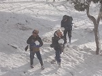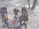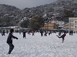 今朝は、昨日から降り続いた雪が、あたり一面に積もっていました。この積雪に子どもたちは大喜び。ほとんどの子どもたちは、雪玉を手に持って登校してきました。はやく登校してきた子どもたちは、運動場で雪を丸めては投げたり、雪だるまを作ったりして、久しぶりの雪の感触を楽しみながら確かめていました。早朝より、校門前のスロープに塩カルをまいたり、積雪している雪や凍結している氷をスコップでどけたり削ったりして、通学時間に間に合うように職員総出で登校の安全確保をしてくれました。