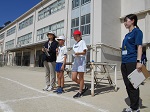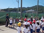 台風の影響でしょうか。今日は朝から青空が広がっていますが、大変強い風が吹いています。3時間目、志賀幼稚園の年長さんが1年生の運動会の玉入れの練習を見に来てくれました。帰り際、年長さんはしっかりと「ありがとうございました」とあいさつをして帰っていきました。1年生も「どういたしまして」と答え、手を振って見送っていました。来年の今頃は、今の1年生と同じように運動会の練習をしていると思います。これからも小学校へ遊びに来て、だんだんと小学校の雰囲気に慣れていって欲しいと思います。