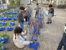 1学期から育てているあさがおのつるを使って、リースを作りました。支柱からつるを外すのは一苦労でしたが、ペアの友だちと協力し合って、なんとかつるを丸くまとめることができました。来週、飾りつけをして持ち帰る予定です。素敵なリースができるといいなと思います。 | |||