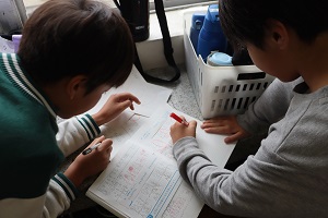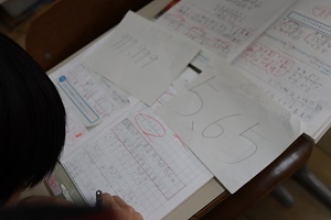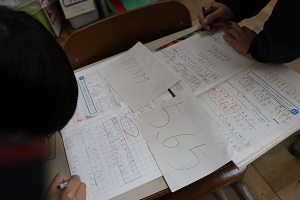 算数の学習では、小数第3位までの数の筆算をしています。今日は自分の数字を友だちと足して、ゲーム感覚で学びました。筆算もどんどん速くなってきました。 | |||