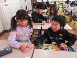 算数科の学習では、「ながさくらべ」に取り組んでいます。子どもたちは、えんぴつや筆記用具を手に取り、「どっちが長いかな?」など友だちと話しながら、楽しそうにくらべていました。 | |||