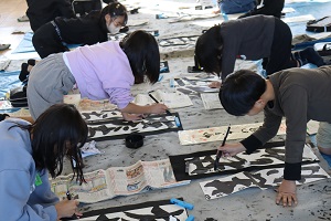 「来年、もっともっと字がきれいになりますように」という思いを込めて、書初めをしました。体全体を使って、力強い字を意識して書きました。 | |||