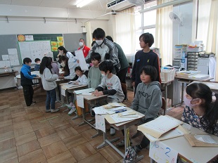 総合学習(石積み)で学んだ七輪を使っておもちを焼いて食べました。七輪で火を熾した経験がないお子さんも多く、大変だなぁと感じつつも、初めての体験を楽しめていたようです。2日間にわたって子どもたちの学習活動に見守りボランティアに来ていただいた保護者のみなさん、ご協力いただいて本当にありがとうございました。 | |||