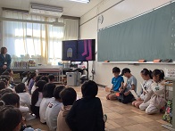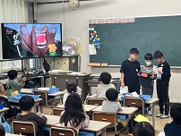 国語科の学習でおすすめの1さつを決めて、1年生に読み聞かせする学習に取り組みました。タブレットを使って1年生が見やすいように工夫するなどしてグループで決めた図書を紹介することができました。1年生も「本がもっと好きになったよ。」と嬉しい感想を伝えてくれました。 | |||