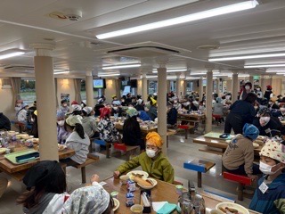 「うみのこの夕べ」 夕食後はみんなで合流タイム。お互いの学校を紹介し合い、ボッチャやサイン交換で盛り上がりました! | |||