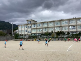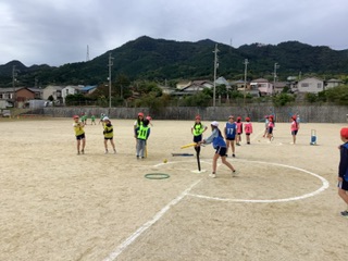 5年生の体育では、Tボールに取り組み始めました。初回の授業では、みんなでルールを確認しながら、楽しく活動することができました。打つ・走るだけでなく、守り方が勝敗の鍵になるスポーツです。今後、どのように守備の工夫が見られるのか楽しみです。 | |||