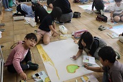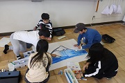 北大津養護学校のお子さんと交流を深めました。グループに分かれてから、模造紙にみんなで一緒に絵を描いて、のびのびと楽しい時間を共有しました。 | |||