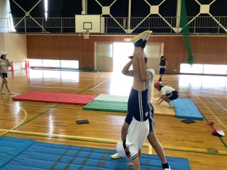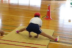 開脚前転のコツをつかみ、勢いをつけて回れるようになってきました。どんどん膝が伸びて、ポーズが決まってきました。後転は、着地が膝になっていた子も「つばめ(おしり)ロケット」を合言葉に取り組んでみると、あら不思議!回れるようになった子がたくさん★この調子でどんどん技をマスターしていってほしいです。 | |||