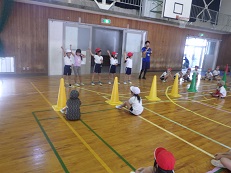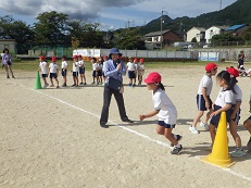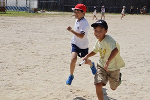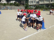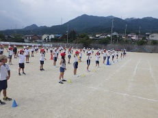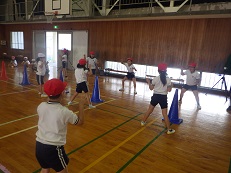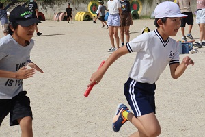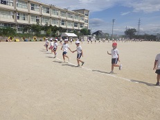 この日の学習では、「バトンの受け渡しをすること」をめあてにがんばりました。待機している子どもたちが、おり返す距離を縮めるために協力して列をつめます。走っているとき、玉を投げているときに各クラスで声援・歓声が響いていました。休み時間には、リレー教室を開催しました。バトンパス、玉入れの練習に取り組みました。参加が増えて運動会に向けて、さらに盛り上げていきたいと思います。 | |||