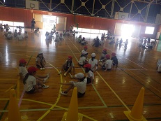 今週から、運動場でのダンスの練習が始まりました。3つの曲に合わせて、世界旅行をしながら、ダンスを踊ります。自分の位置を覚えて移動することは難しいですが、ペアや4人グループのなかまと協力して、楽しんで練習しています。 | |||