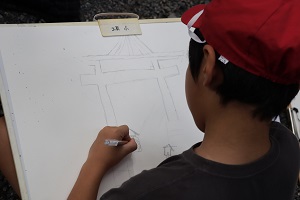 日吉大社に写生のために行きました。 よく見て紙いっぱいに大きく書いて学校に戻ってきました。これから、絵の具を使って色をつけていきます。どんな作品になるのか楽しみです。 | |||
