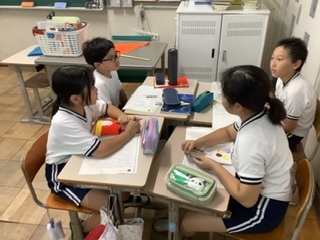 昼休みになると、特別教室から大きな応援が聞こえます。運動会の応援合戦、どんな応援が披露されるか楽しみです。 | |||
