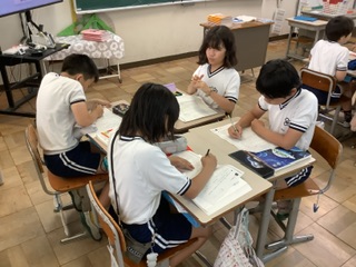 5年生の国語では、物語「たずねびと」を通して、主人公の戦争に対する見方の変化について考えました。教科書の文章から根拠を探しながら読み進めることで、戦争の辛さや悲惨さを深く感じ取ることができました。物語を通して、平和の大切さについて改めて考える時間となりました。 | |||
