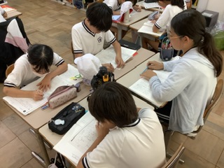 平行四辺形や、ひし形、台形を作図できるようにがんばっています。三角定規の当て方、ずらさないように動かすなど難しいことがたくさんですが、正確な図形が書けるようにがんばっています | |||