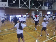 3年生では、運動会に向けて日々練習に取り組んでいます。みんなのやる気がみなぎっていて、とても活気のある練習になっています。鳴子を使用した民舞ですが、揃った時には美しい音が体育館中に響きわたります。 | |||