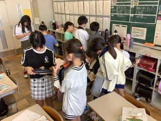 この日の2、4、5、6年生の朝の読書の時間は「坂ブックタイム」でした。各担任が読み聞かせをしたり、ブックトークをしたりしました。静かに本の世界観に浸ったり、担任とのやりとりを通して本の楽しさを味わったりしました。 | |||