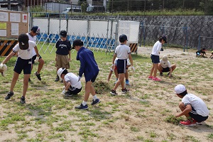夏休み中に運動場の草が生えてきてしまったので 環境委員会主催の「草ぬき大会」が行われました。 みんなのおかげで運動場の草がなくなっています。 これで、気持ちよく運動会に向けて学習を進められますね! ありがとう!! | |||