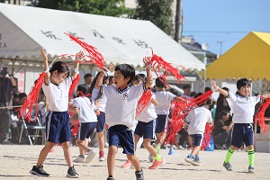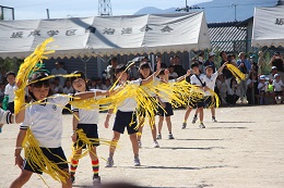 今年の運動会では、「よさこい」の踊りを元気に披露しました。鳴子の音とともに一人ひとりが力強く踊りました。リレーでは、初めてのバトンパスに挑戦し、チームで協力して走る姿が立派でした。 | |||