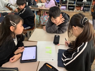 5年生の国語では、マトリックス表を使って意見を整理する話し合いを行いました。自分の考えを明確にしながら、友だちの意見との違いにも気づくことができました。 | |||