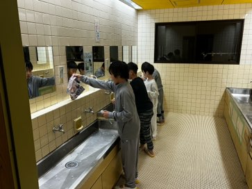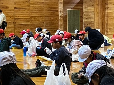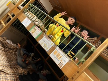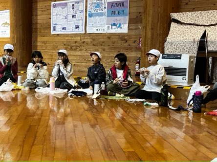 2日目になりました。子どもたちはシーツを協力してたたんだり、所内をきれいにそうじしたりした後、朝ごはんを食べています。 | |||