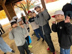 オリエンテーションが終わり、アマゴ用の串を削っています。 | |||