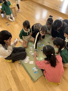 5年生が5歳児さんとの交流の一環で、日吉の森保育園に行きました。保育園では一緒に遊んだり、5歳児さんが練習を頑張っているフォークダンスを見せてもらったりしました。とっても上手な5歳児さんに、5年生は大きな拍手を送っていました。 | |||