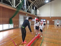 体育の時間に、跳び箱遊びをしています。今週は、サーキットにチャレンジ!忍者になって跳び箱にとびのったり、ステージからとびおりたりして、楽しく体を動かしました。 | |||