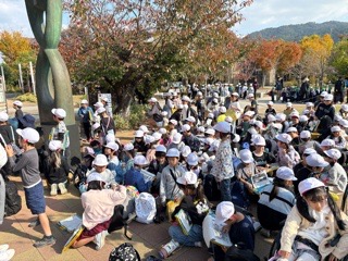 11月10日6時間目の委員会の時間に企画JRC委員会のメンバーで日吉大社へ行きました。夢プロジェクトの取り組みで、今年度は日吉大社とコラボレーションすることになったためです。夢プロジェクトとは、地域と学校が一緒に地元の地域を盛り上げていく取り組みを通して、子どもたちの主体性を育むことを目的としています。