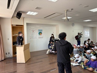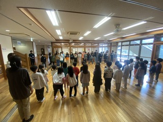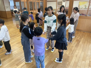 5.5交流で、真愛保育園を訪問しました。5歳児さんとわらべうたなどを通して楽しく交流しました。初めは緊張していた子どもたちも、笑顔で関わるうちに自然と打ち解け、温かい時間を過ごすことができました。 | |||
