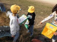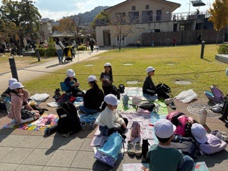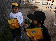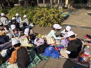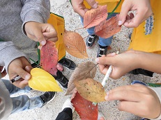 生活科の学習で、「あきみつけビンゴ」をしました。赤や黄色、茶色に色づいた葉っぱを見つけたり、においをかいだりして、秋をいっぱい感じていました。 | |||