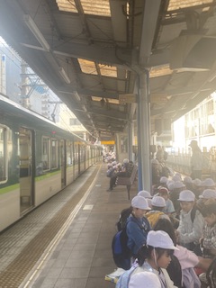 坂本比叡山口駅から乗車しました。駅員さんのお仕事や利用者さんの様子を観察しています。 | |||