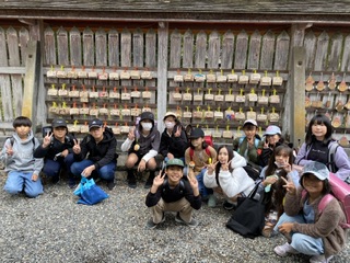 その絵馬を企画JRC委員会のメンバーが今日日吉大社につけに行ってきました!子どもたちは分担して丁寧に作業を進め、無事に全校分つけることができました。