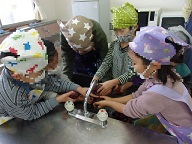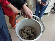 青空の畑では、たくさんのサツマイモの収穫がありました。暑いときも欠かさず水やりを頑張った成果です。トウモロコシも少し収穫できたそうです。それを使ってクッキングです。まずサツマイモをみんなできれいに洗います。ふかしいもや、イモもち、ポップコーン、クッキングが始まるととってもいいにおいがしてきました。今回は、「の」「で」「から」が目標です。『自分の役割、自分でする、自分から進んでする』みんな楽しくがんばっていました。