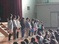 各学年の代表の児童から「2学期頑張ったこと」の発表もありました。運動会、なわとび、リコーダー、外国語・・・など、それぞれの子どもたちが頑張りやそこから学んだことを発表してくれました。6年生児童の「残り少なくなった小学校生活を悔いなくすごすよう色々なことに挑戦したい。」という言葉に、最高学年らしさが感じられました。