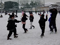 昨日からの降雪で運動場が真っ白です。大きな雪玉を抱えて登校する子どもの姿もありました。持ってきた雪玉を雪だるまにして門に飾ってくれました。運動場では雪合戦が始まりました。低学年も高学年もみんな雪合戦は大好きなようです。ふわふわのパウダースノーなので当たっても大丈夫です。大きな雪ダルマづくりを楽しむ子どももいました。